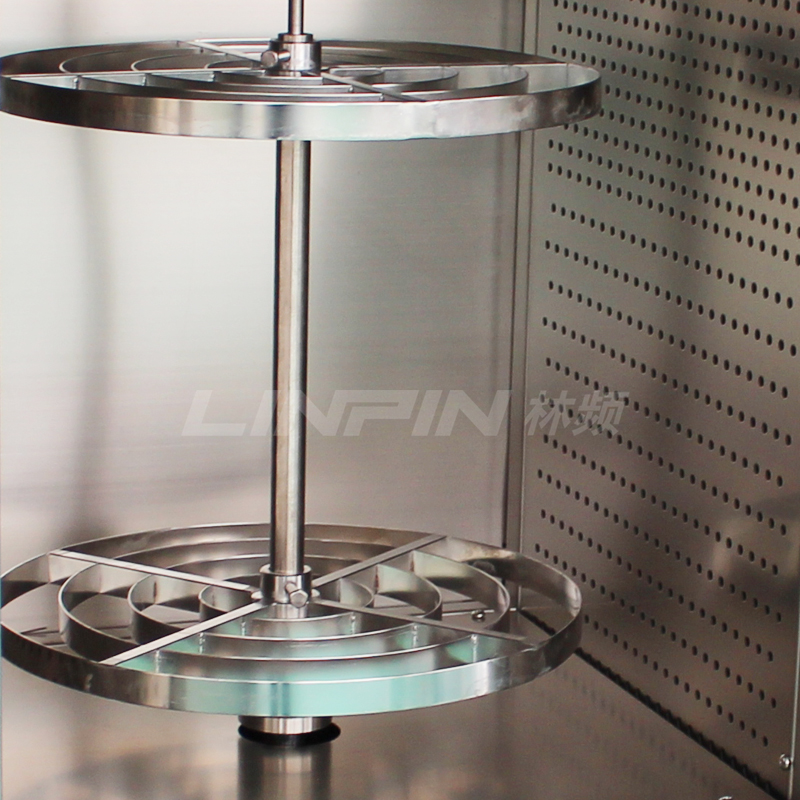試樣轉(zhuǎn)盤:兩層不銹鋼轉(zhuǎn)架(可根據(jù)客戶要求定制隔板樣品架)